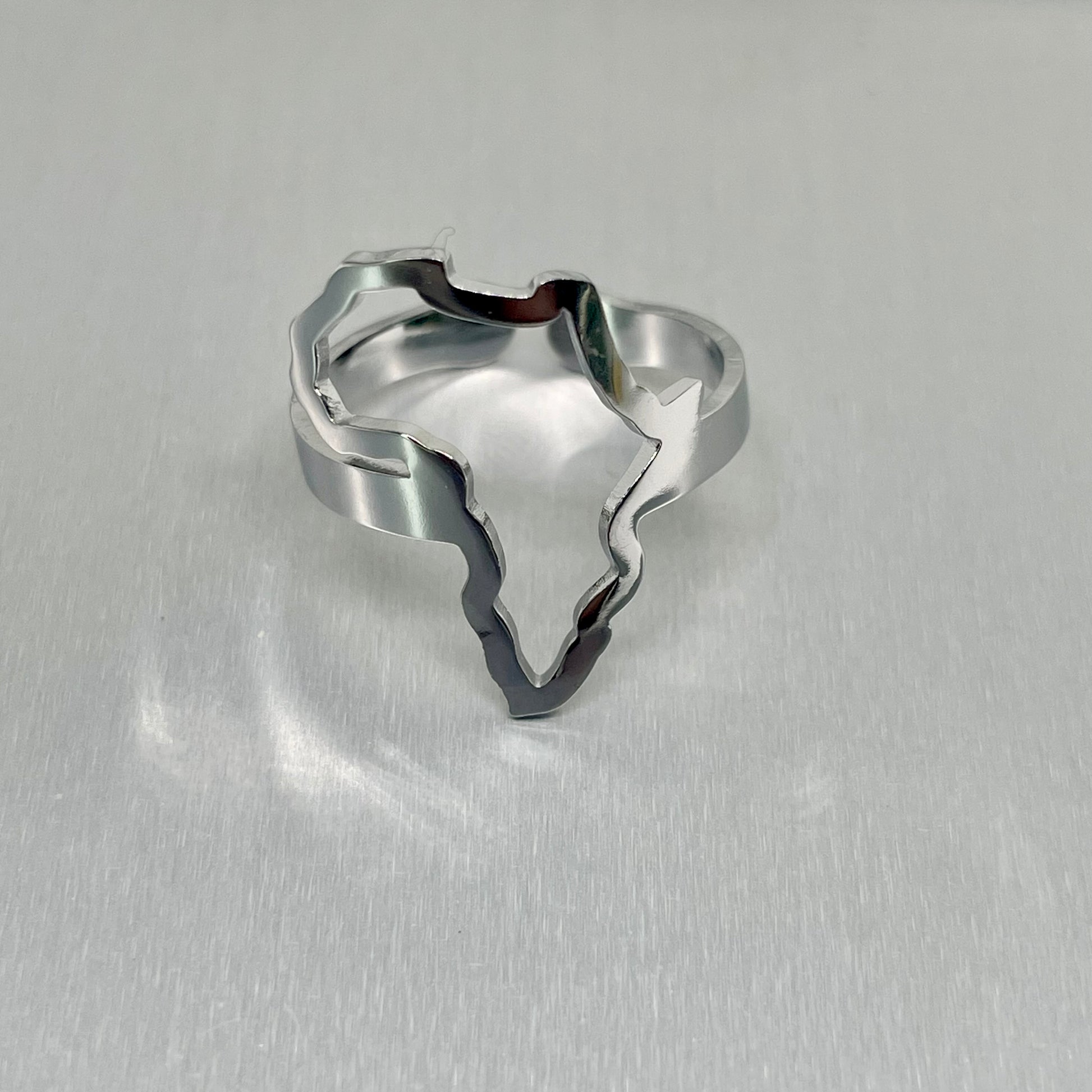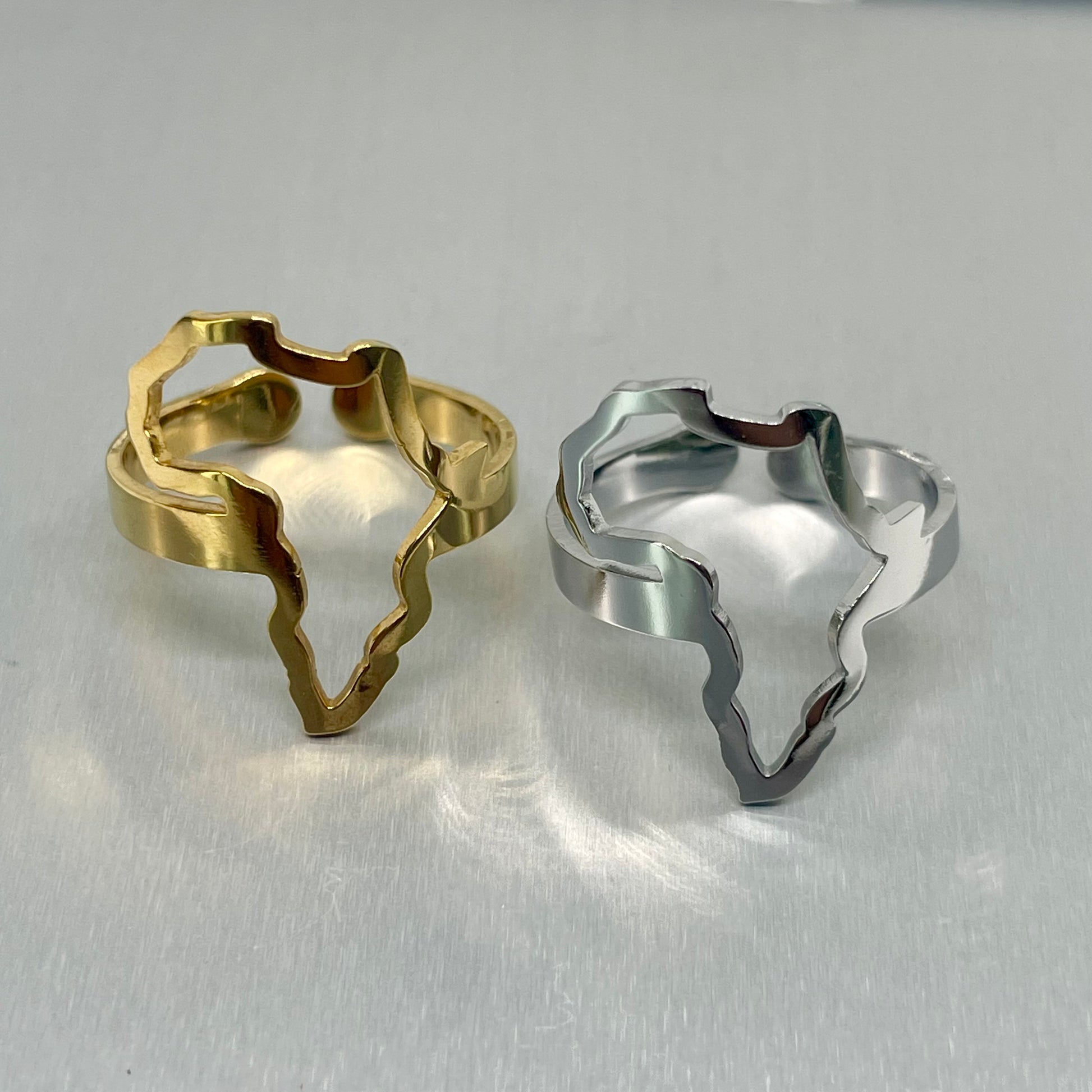 Our Africa Outline ring is a one of a kind piece that celebrates the beauty of Africa. Crafted in tarnish resistant stainless steel and enrobed in 18ct gold this statement ring features a hollow outline of the map of the African continent.