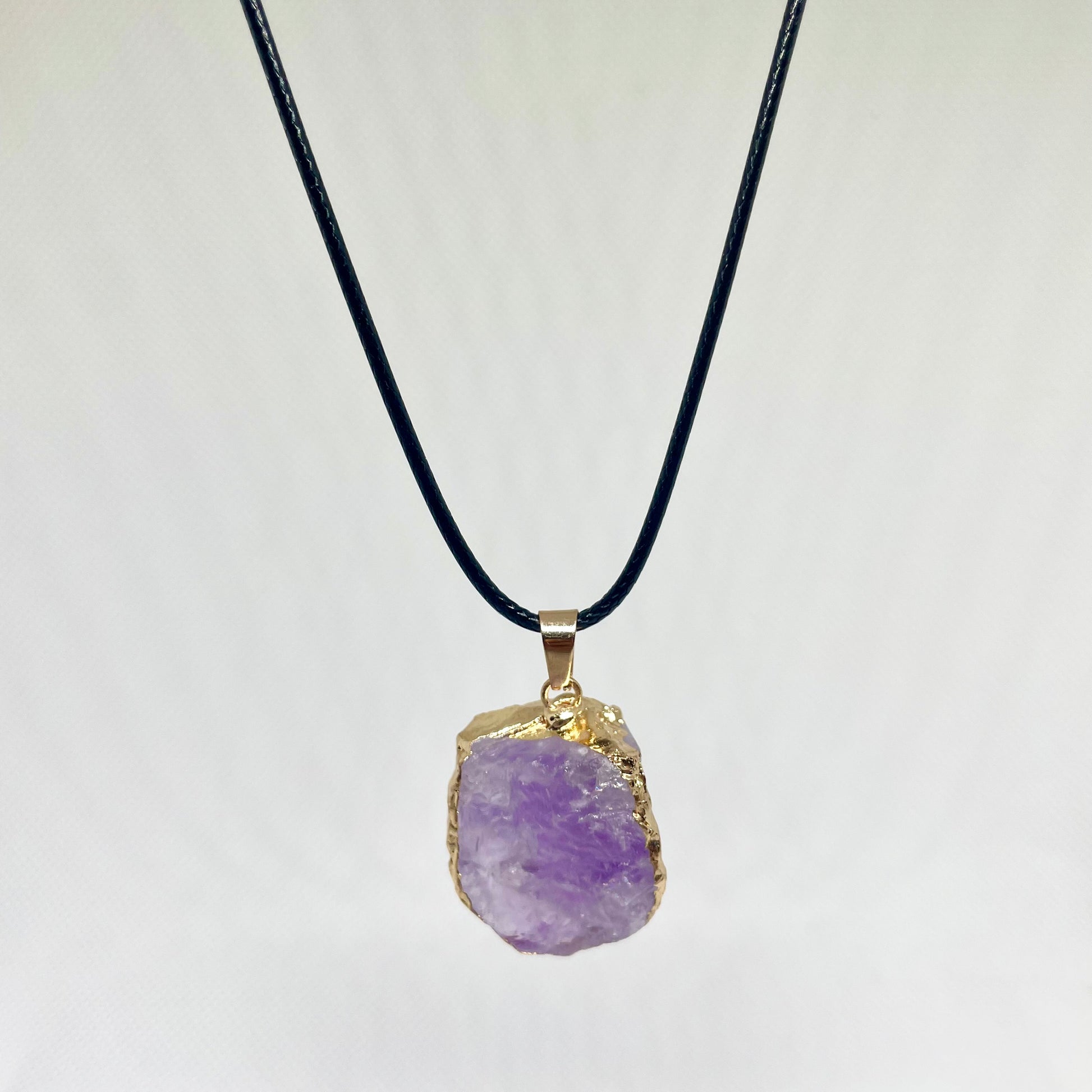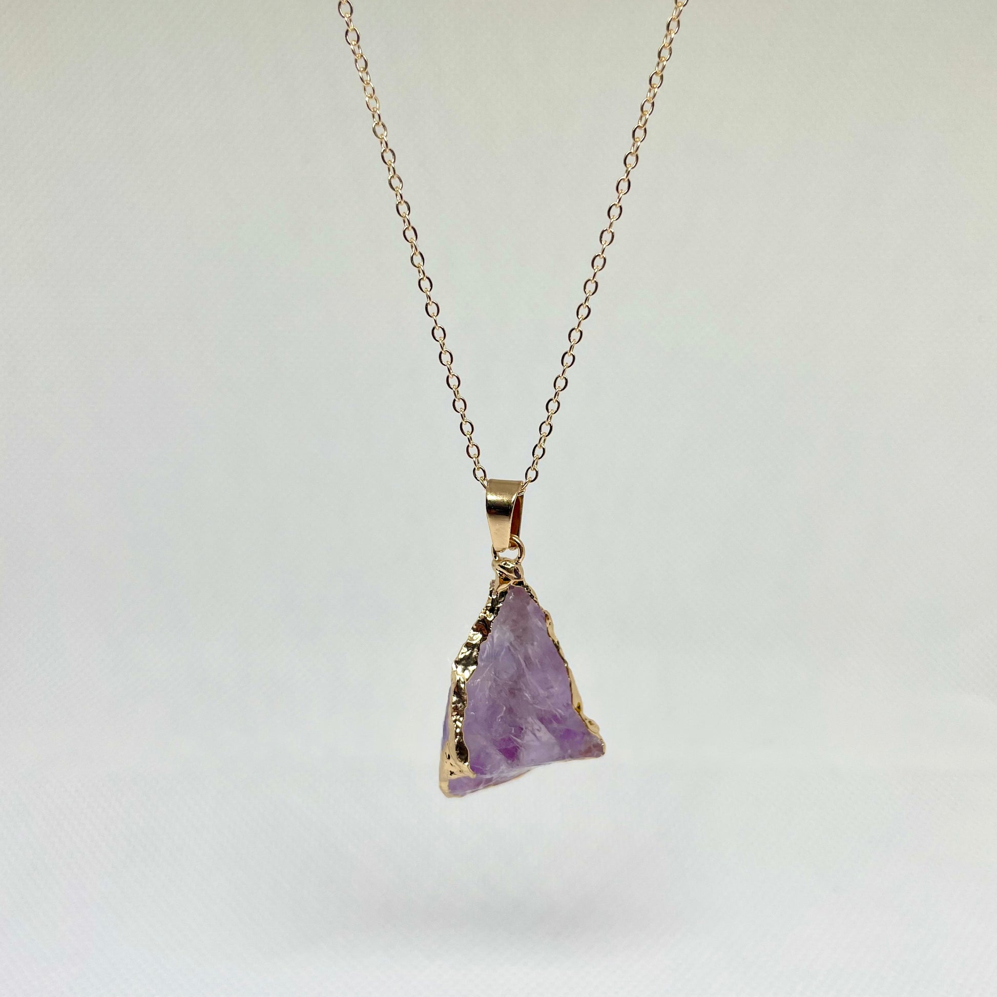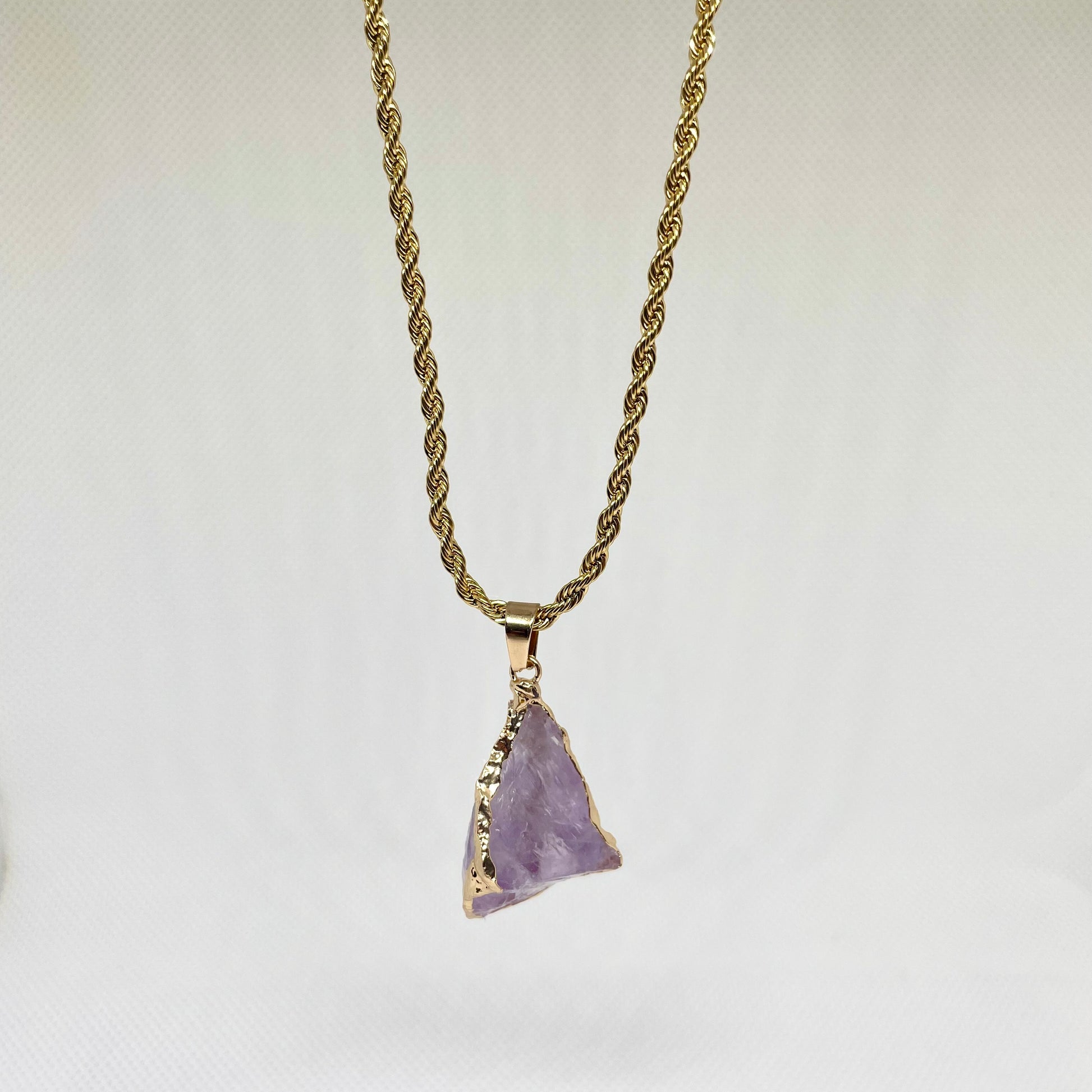 This elegant necklace showcases a rich amethyst gemstone, radiating a deep, calming purple glow. Perfect for adding a touch of grace and tranquility, it effortlessly complements any ensemble with its timeless beauty. The color of amethyst symbolizes spirituality, tranquility, and inner peace, often associated with calmness and balance.