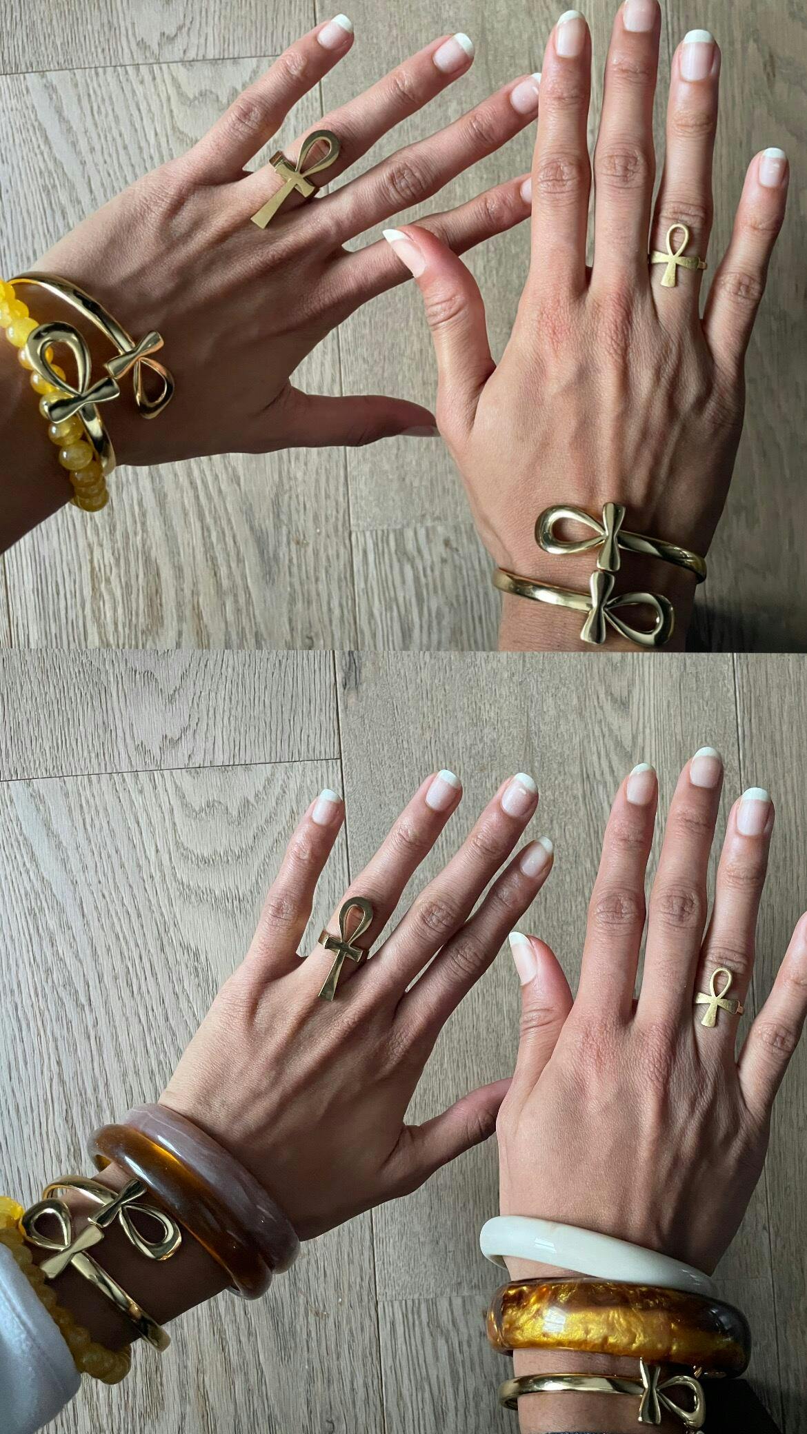 This double ankh bracelet features two intricately designed ankhs, symbolizing life, immortality, and spiritual balance. Perfect for those seeking to wear a powerful symbol of strength and vitality.