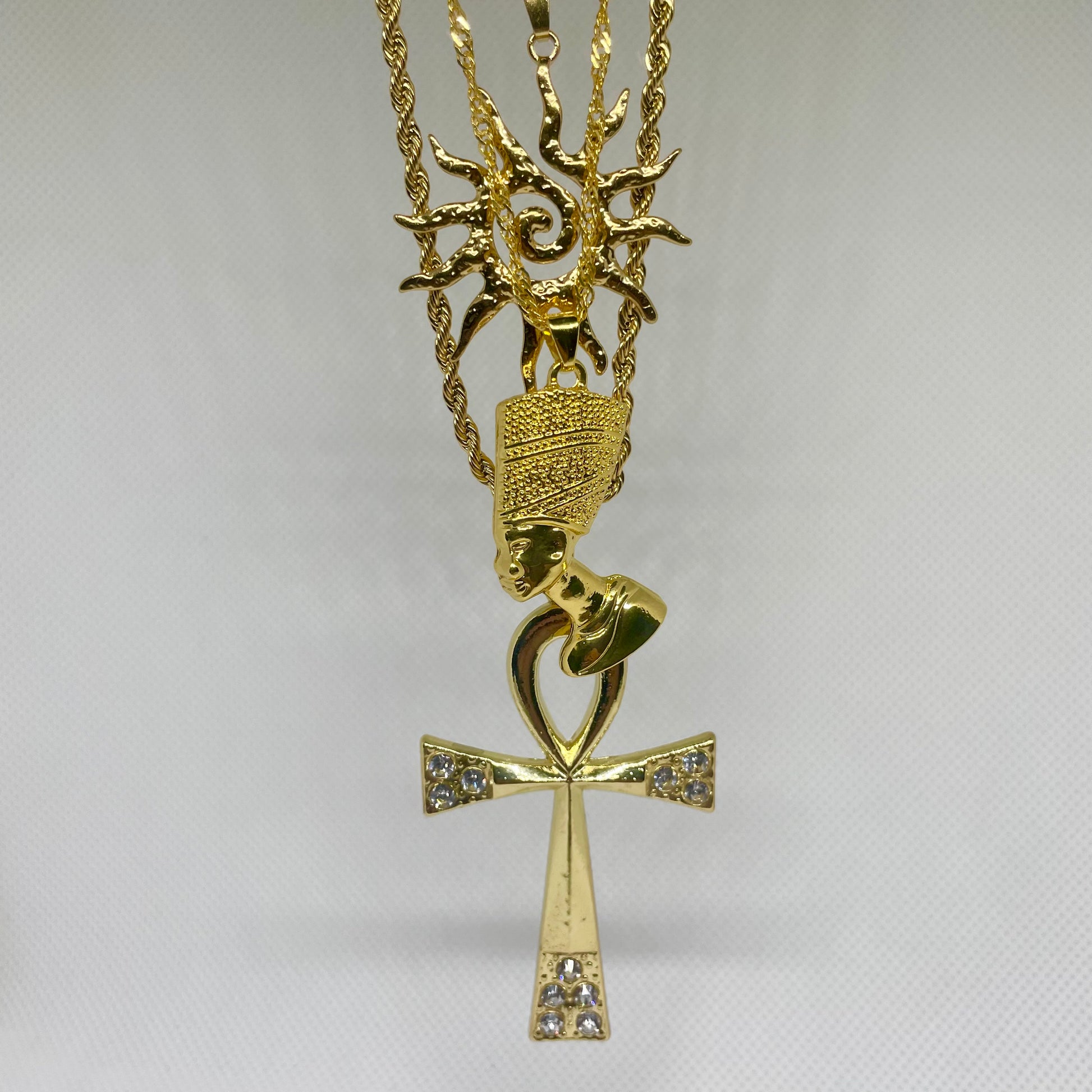 Embrace the elegance of ancient royalty with the Royal Ancestry Set, a stunning collection inspired by timeless Egyptian symbolism. This exquisite set features a Nefertiti necklace, celebrating the beauty and power of the legendary queen, paired with delicate sun and ankh charms that symbolize life, vitality, and eternal protection.