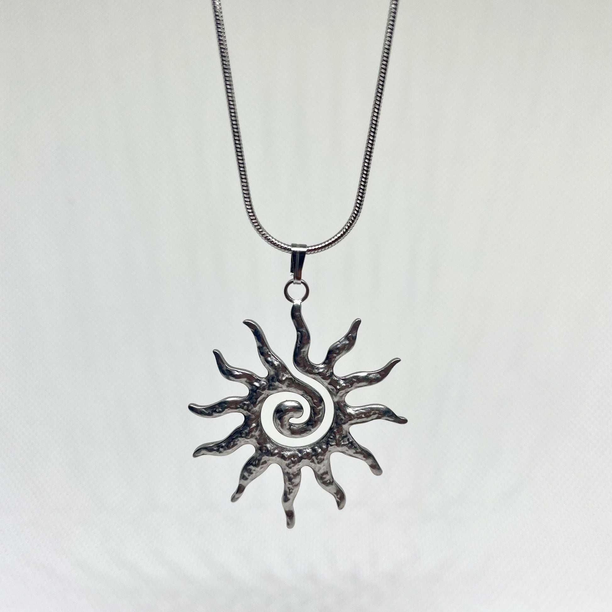 This silver sun necklace is a charming and versatile accessory. Its simple sun pendant shines with a soft, polished finish, offering a delicate touch of radiance. Whether you wear it alone or layer it with other pieces, this necklace brings a warm, uplifting vibe to your look, making it perfect for both casual and special occasions.